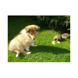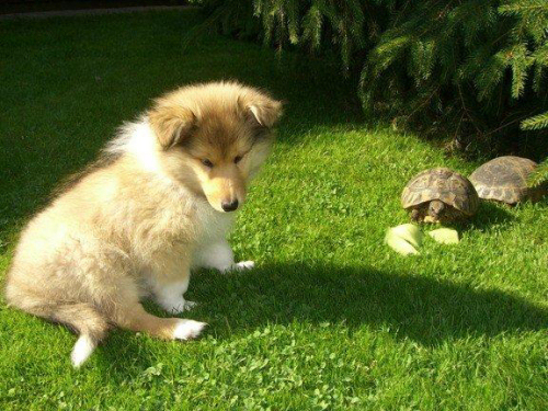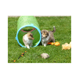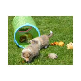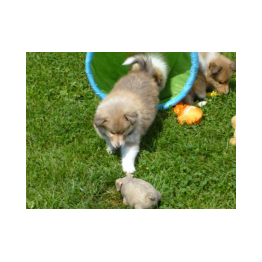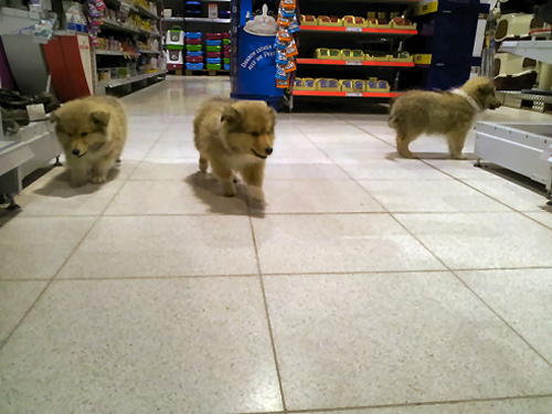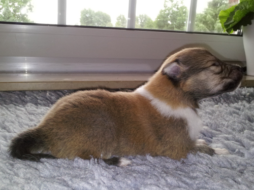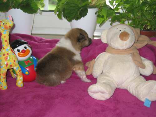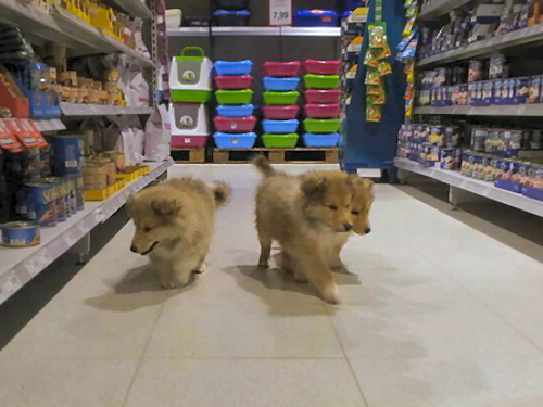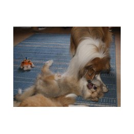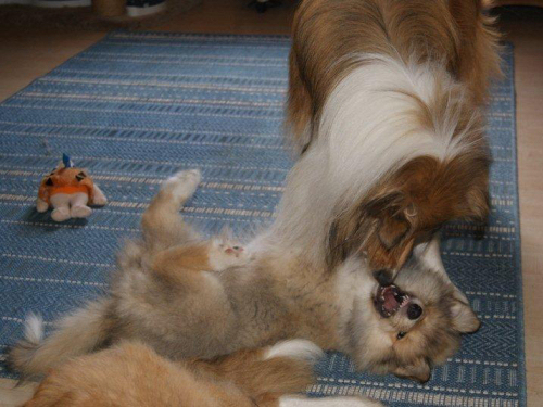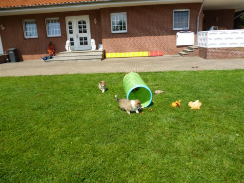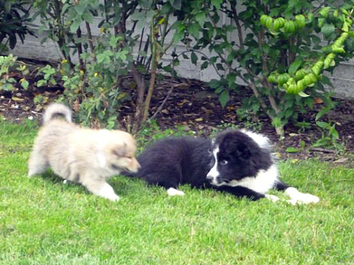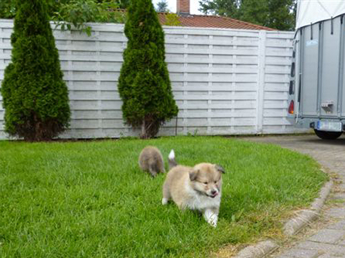 Naja, der Umzug war gut, haben nun viel mehr Platz zum Toben. Ja, richtig gehört wir spielen, rangeln, knurren und versuchen zu bellen. Essen mögen wir auch gern, wobei - an den "Tischmanieren" arbeiten wir noch.