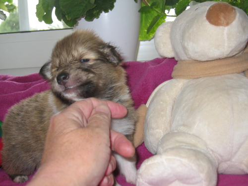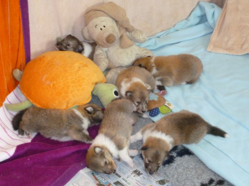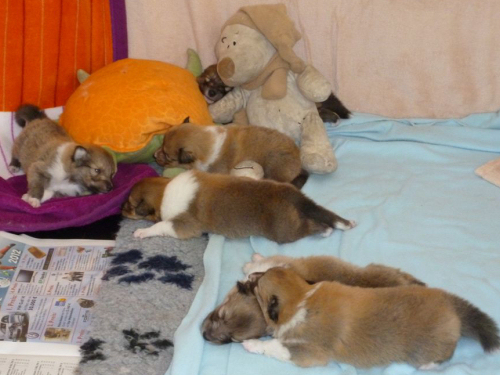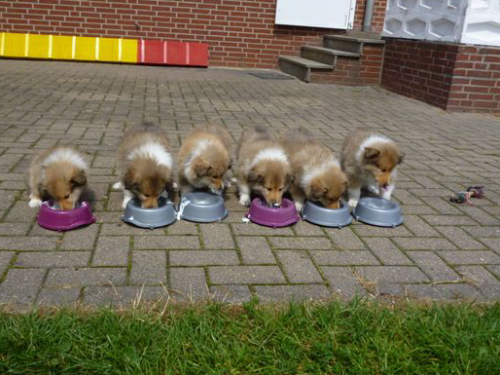 Wir sind da! Wir, dass sind 3 Rüden und 3 Hündinnen. Heute am 08.06.2012 in der Zeit von 14.00 h bis 17.22 h haben wir das Licht der Welt erblickt. Wir wiegen zwischen 200 und 300 g. Top fit und munter haben wir den Geburtsstress schnell überstanden und sind an die "Milchbar" gekrabbelt. Unserer Mutter geht es voll gut und sie ist mächtig stolz auf uns. Peter, Deryn und Birgit natürlich auch.