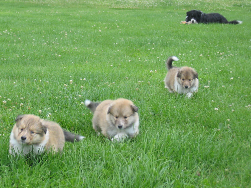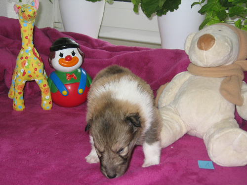 Wir waren am 11.05.2012 zum Ultraschall und der Tierarzt hat 6 Fruchthüllen gesehen. So hoffen wir auf Welpen um den 9. Juni und freuen uns auf den ersten Colliewurf nach 3 Jahren ganz besonders.