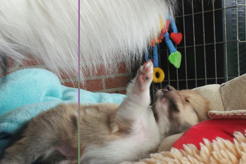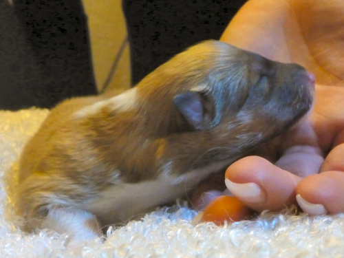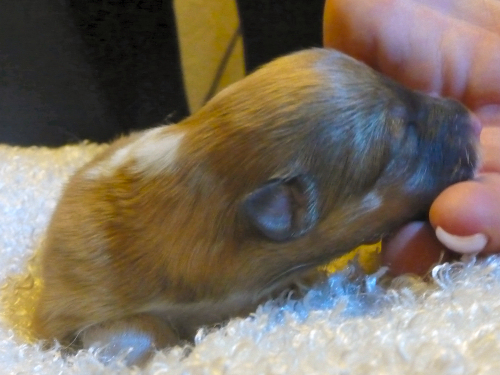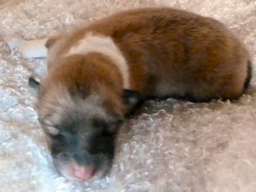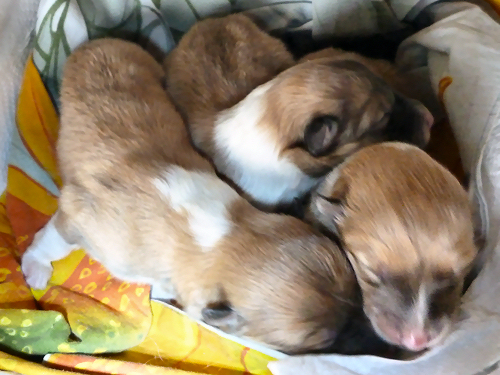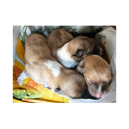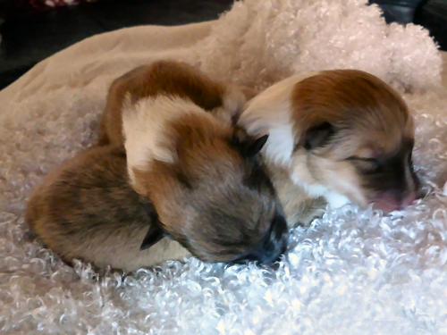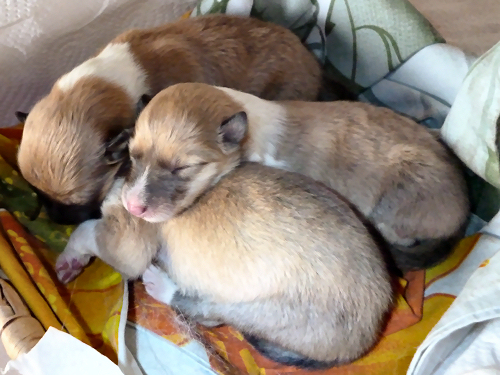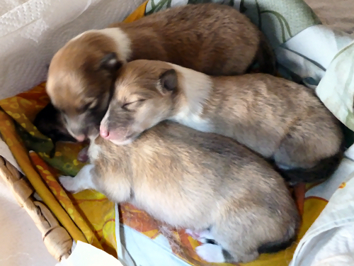 Es erblickten 2 Hündinnen und 1 Rüde das Licht der Welt. Sie wiegen zwischen 288 und 330 g, sind fit und trinken sich ausgiebig satt an der Milchbar. Flame ist wieder ganz die stolze Mama und soooo lieb zu ihren Kindern.