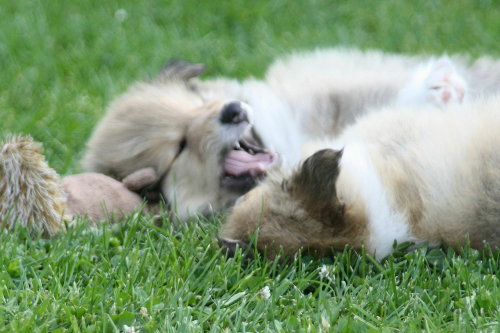 “Hey ist das toll, die Sonne scheint und wir sind echt gut drauf.” Leider sind die Fotos schon etwas überholt, denn die Zwerge waren da fast 7 Wochen alt. Aber wir fanden sie so schön!